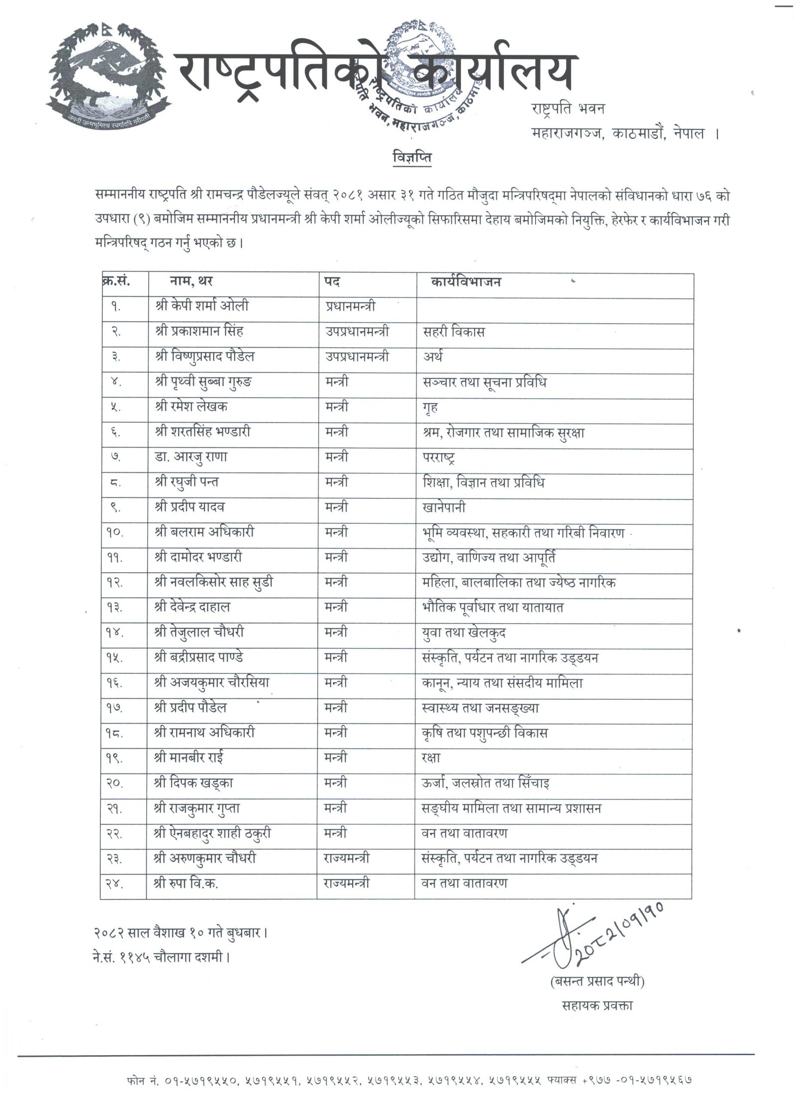 Kathmandu, Nepal – The President of Nepal, Ram Chandra Paudel, appointed Raghuji Pant Education Minister of the Ministry of Education, Science, and Technology. The recommendation came from Prime Minister KP Sharma Oli, according to sources at Sheetal Niwas.